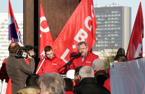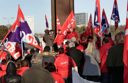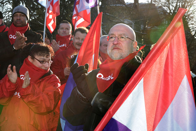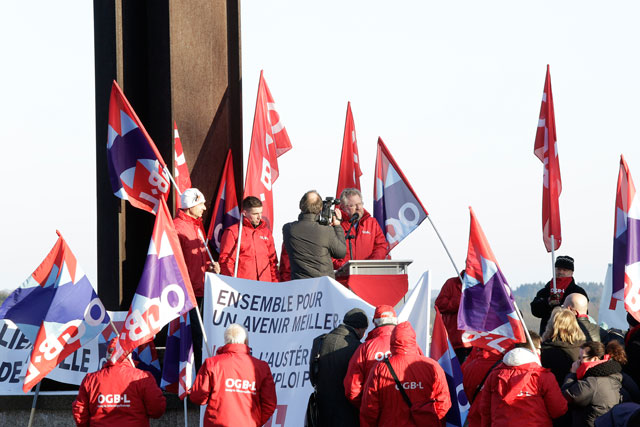 Am Vorabend des europäischen Gipfeltreffens vom 14. und 15. März, organisierte der OGBL am 13. März eine Protestdemo gegen die europäische Austeritätspolitik symbolisch vor dem Robert-Schuman-Denkmal in Luxemburg-Stadt.