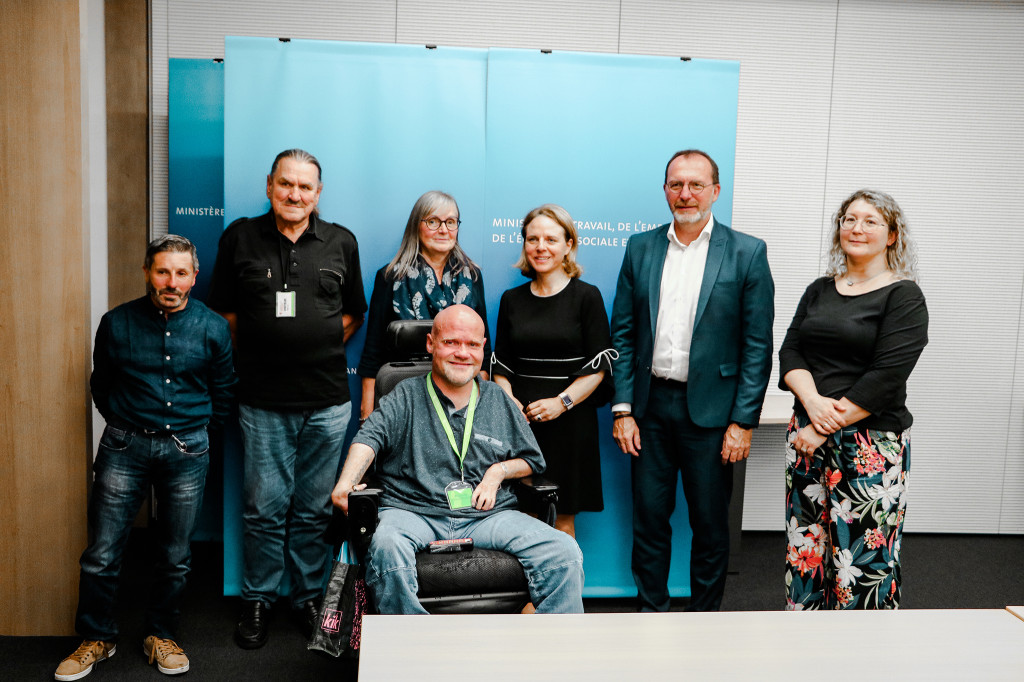 Une délégation du département des Travailleurs handicapés (DTH) de l’OGBL, conduite par son responsable, Joël Delvaux, a été reçue récemment par le ministre du Travail, de l’Emploi et de l’Économie sociale et solidaire, Georges Engel, et la ministre de la Famille et de l’Intégration, Corinne Cahen, pour s’entretenir avant tout des assistants à l’inclusion dans l’emploi, du statut du salarié handicapé et des quotas de salariés handicapés dans les entreprises.
